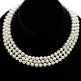 Jackie kennedy style Three strent Fresh Water Pearl ” This stunning 17 to 18 matinee-length three strent necklace features lustrous white Freshwater pearls, hand-selected for their perfect luster and smooth surface. A versatile piece ideal for both formal events and casual outings.